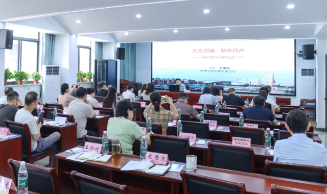 本次培训紧扣工商联工作实际,聚焦系统业务核心领域,精心设置了培训课程,内容充实,针对性强。市政协研究室万家阳主任应邀为首场培训授课,以《关注民情,倾听民声——切实做好社情民意工作》为题进行专题讲座,他结合自身丰富的理论研究和实践经验,系统阐述了社情民意的重要作用、基本要求、撰写方法,通过大量生动实例,深入浅出地讲解了如何精准捕捉经济社会生活中的热点、难点、堵点问题,并将其转化为高质量的社情民意,为党委、政府科学决策提供参考。