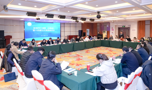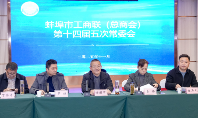 11月19日,蚌埠市工商联(总商会)召开第十四届五次常委会,深入学习贯彻党的二十届四中全会精神,研究部署相关工作。市政协副主席、工商联主席储昭节出席并讲话,会议由市委统战部副部长、工商联党组书记、常务副主席金梅主持,市工商联(总商会)常委及各县(区)工商联主要负责同志共40余人参加会议。