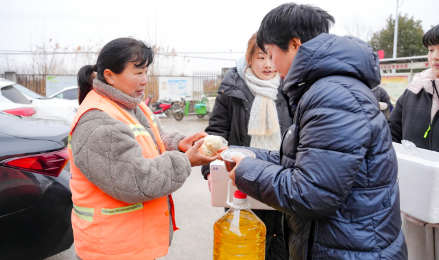 在燕山乡梨朱村、定庵村,企业代表们慰问了燕山乡62名环卫工人,为他们送上了精心准备的腊八粥、暖心包子、食用油和节日问候,叮嘱大家注意冬日保暖、劳逸结合,感谢他们为辖区环境清洁日复一日的辛勤付出。